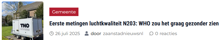 03-03-2024 Petitie om eindelijk uitstoot langs N203 Krommenie te meten